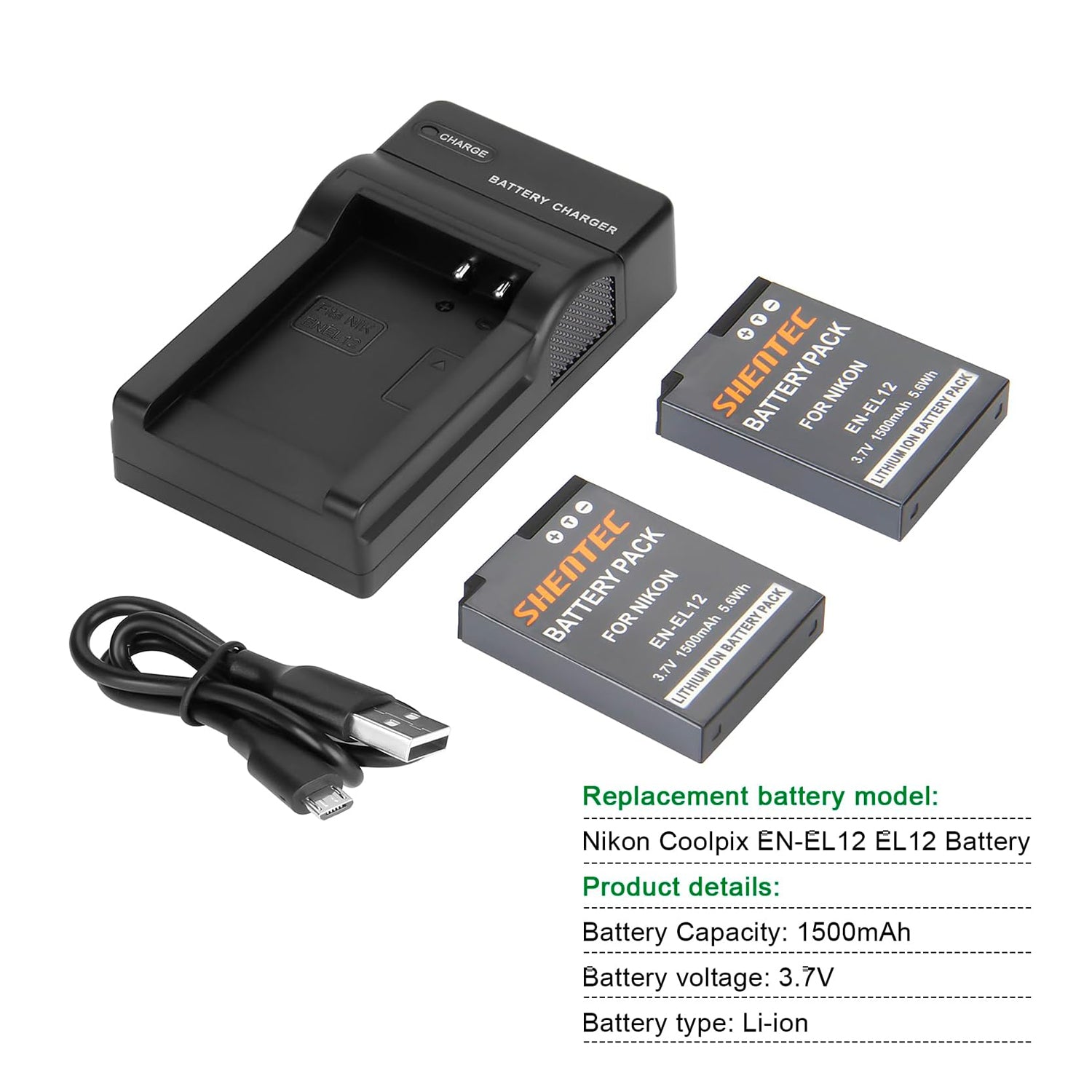 SHENTEC Li-ion EN-EL12 EL12 Battery Charger for Nikon Coolpix