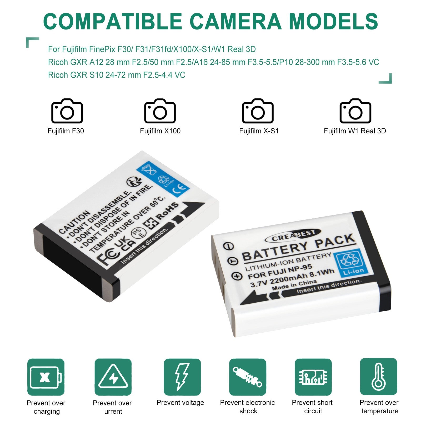 - 2 batterie extra pienamente compatibili: due batterie di ricambio con capacità di 3.7V 2200mAh. Batteria di ricambio ad altissima capacità per FUJIFILM NP-95 NP95. 100% compatibile nella sostituzione della batteria originale